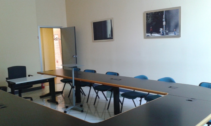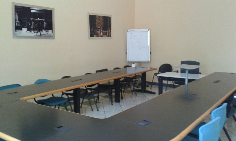 Aula luminosa, ospita comodamente fino a 15 allievi. Ideale per lezioni frontali, consente al docente di muoversi agevolmente fra i partecipanti grazie all’ampio tavolo a ferro di cavallo che lascia un comodo spazio centrale.